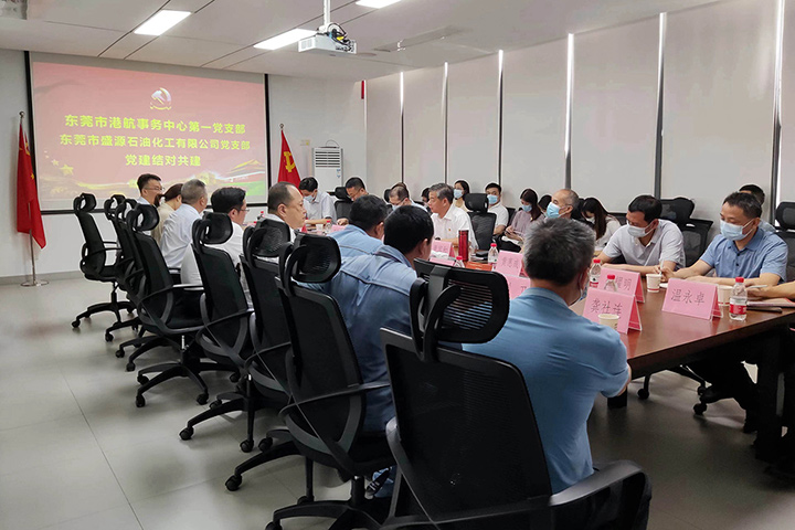 活動中,盛源石化黨支部書記、總經理王學成和東莞市港航事務中心第一黨支部書記穆瑞分別代表雙方黨支部簽訂黨組織共建協議。雙方領導為黨組織共建揭牌,并就安全生產工作和共建事宜進行深入交流。