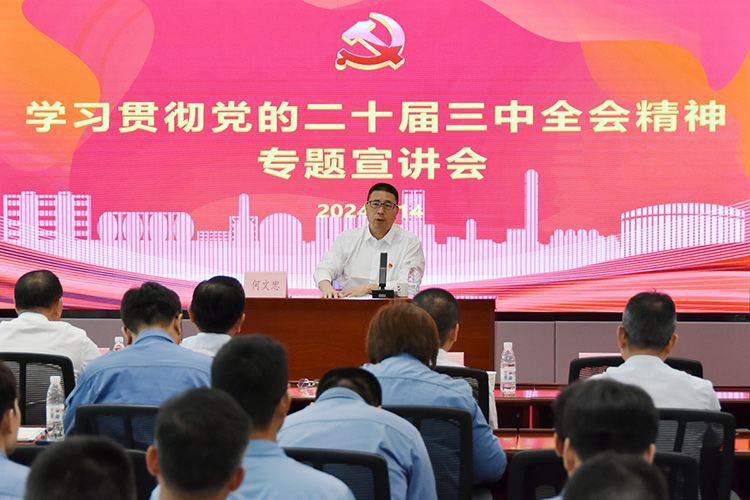 9月14日上午,巨正源舉辦學(xué)習(xí)貫徹黨的二十屆三中全會(huì)精神專(zhuān)題宣講會(huì)。公司黨委書(shū)記、董事長(zhǎng)何文忠作宣講報(bào)告,動(dòng)員廣大黨員干部職工把思想和行動(dòng)統(tǒng)一到全會(huì)精神上,把智慧和力量凝聚到目標(biāo)任務(wù)上來(lái),全力以赴推動(dòng)各項(xiàng)工作不斷取得新突破、新成效,奮力譜寫(xiě)中國(guó)式現(xiàn)代化巨正源實(shí)踐新篇章。