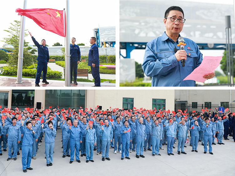 上午8時,升國旗儀式正式開始。全體人員列隊肅立,身姿挺拔的升旗手、護旗手昂首闊步護送國旗進場。“升國旗、唱國歌!”隨著嘹亮的口令響起,現場員工以莊嚴的注目禮追隨著國旗冉冉升起,飽含深情齊唱國歌。鮮艷的五星紅旗迎風飄揚,每位員工的心中都充滿了對祖國的無限熱愛和深深祝福。