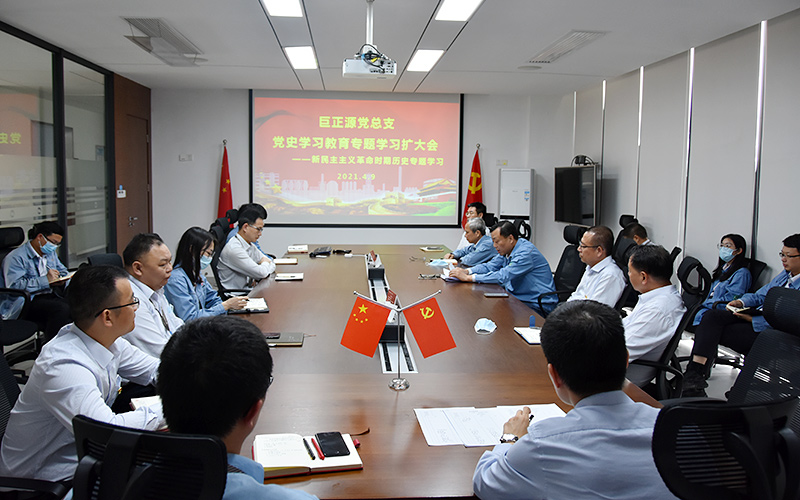 按照黨史學習教育工作安排,4月9日,巨正源黨總支召開黨史學習教育專題學習擴大會,專題學習新民主主義革命時期歷史,會議由黨總支副書記張寶業(yè)主持,公司黨員領導干部近30人參加了專題學習。