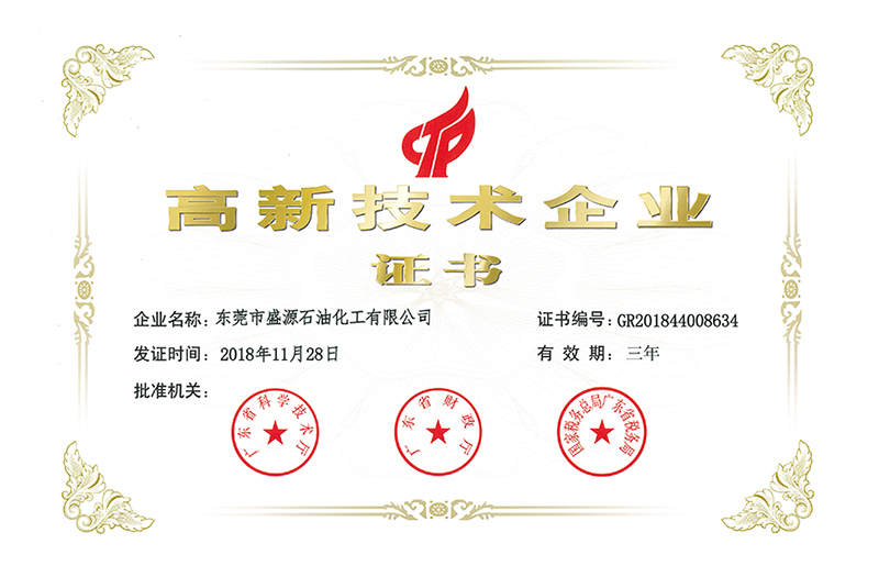 近日,巨正源所屬東莞市盛源石油化工有限公司順利通過“國家高新技術(shù)企業(yè)”認(rèn)定,獲得了由廣東省科學(xué)技術(shù)廳、廣東省財政廳、國家稅務(wù)總局廣東省稅務(wù)局聯(lián)合頒發(fā)的高新技術(shù)企業(yè)證書,證書編號為GR201844008634。