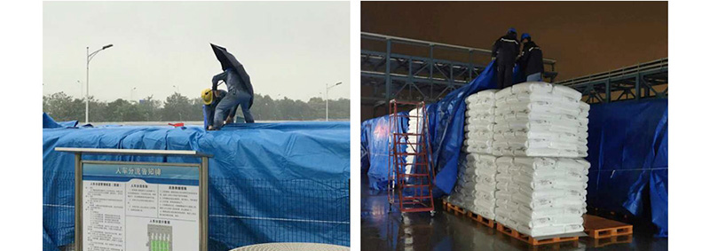 針對(duì)近期天氣變幻莫測(cè)、時(shí)晴時(shí)雨的情況,青年戰(zhàn)疫突擊隊(duì)采用“打游擊”的方式進(jìn)行移庫(kù)工作,雨來(lái)我退,雨停我移。雨大我躲,雨小我出。2月13日晚,天空突然飄起了雨絲,部分剛轉(zhuǎn)移出庫(kù)的產(chǎn)品還未來(lái)得及蓋上“雨衣”,青年戰(zhàn)疫突擊隊(duì)成員冒雨迅速給轉(zhuǎn)移出庫(kù)的產(chǎn)品蓋上防水帆布。隨著下游企業(yè)陸續(xù)復(fù)工復(fù)產(chǎn),這場(chǎng)“游擊戰(zhàn)”的勝利指日可待。